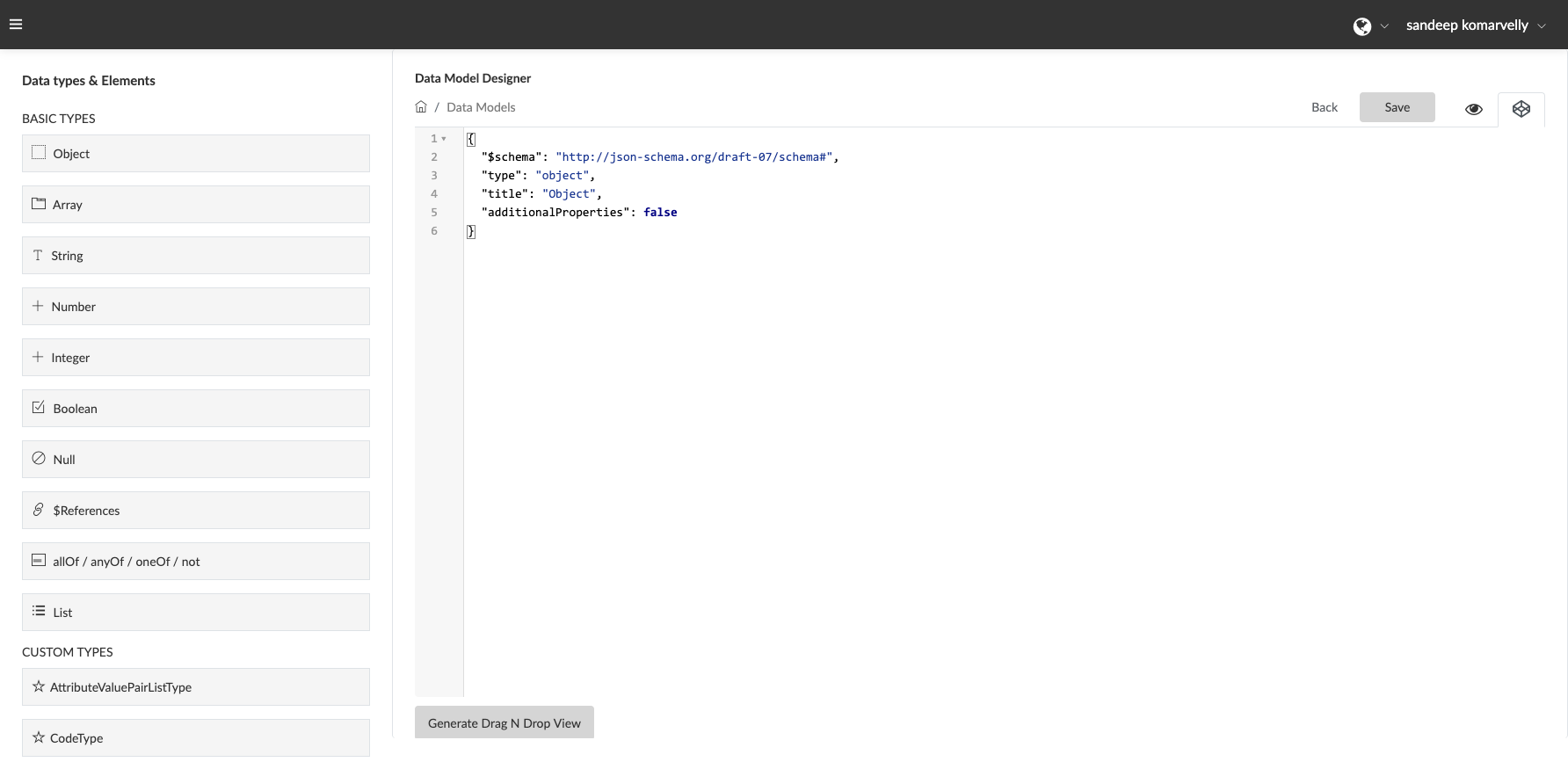 Data Model Designer: A free and flexible workspace with a drag and drop feature for your data attributes, while also automatically generating code in the background. The user-friendly interface enables rapid building of data attributes and attaches complex properties to them without writing code. The workspace begins with a default OBJECT data type.